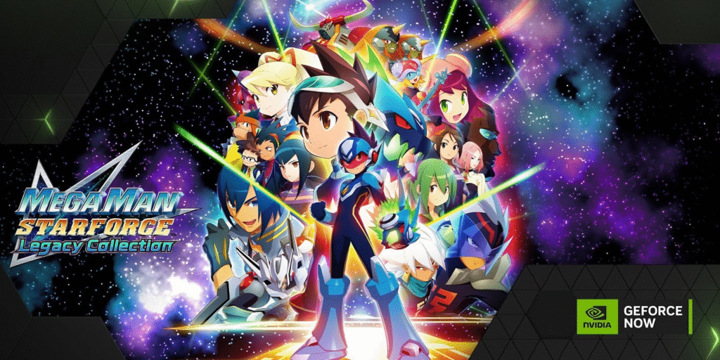 A coleção Mega Man Star Force Legacy Collection, da Capcom, inclui sete jogos e recursos adicionais, como uma galeria de ilustrações e músicas. Geo Stelar, de 11 anos, é um garoto em luto que se isola após o misterioso desaparecimento do pai, astronauta. Sua vida muda quando ele encontra um ser extraterrestre chamado Omega-Xis, que lhe concede o poder de se tornar Mega Man. A coleção é transmitida instantaneamente pelo GeForce NOW, transformando qualquer dispositivo em um terminal Star Force pronto para salvar o mundo mais uma vez.